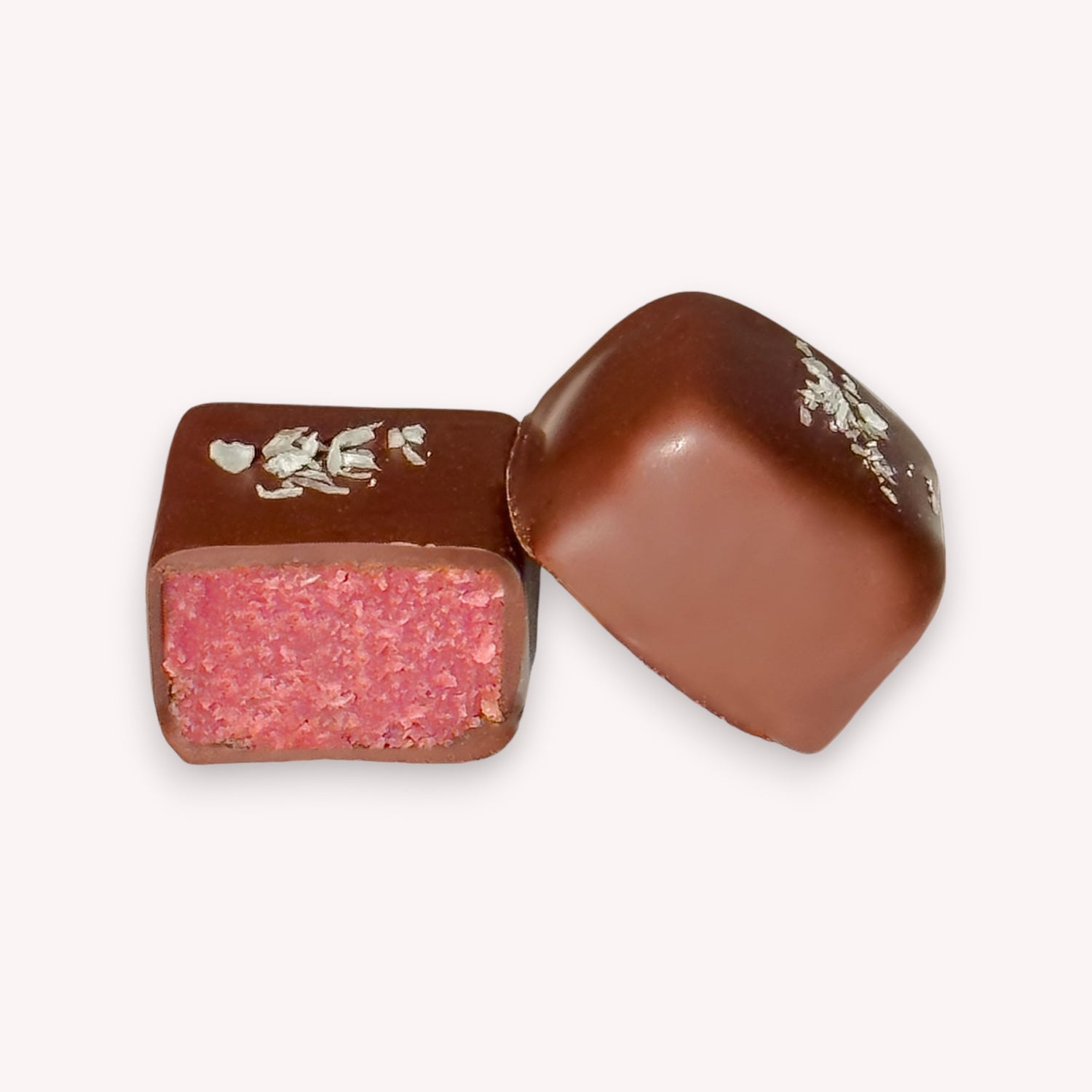 A coco-nutty with a spike flavor from the raspberries, it is Frutti and fresh with a chewy texture garnished with coconut. Delightfully enhanced with aromatic vanilla bean and enrobed in 70% Premium Belgian dark chocolate.