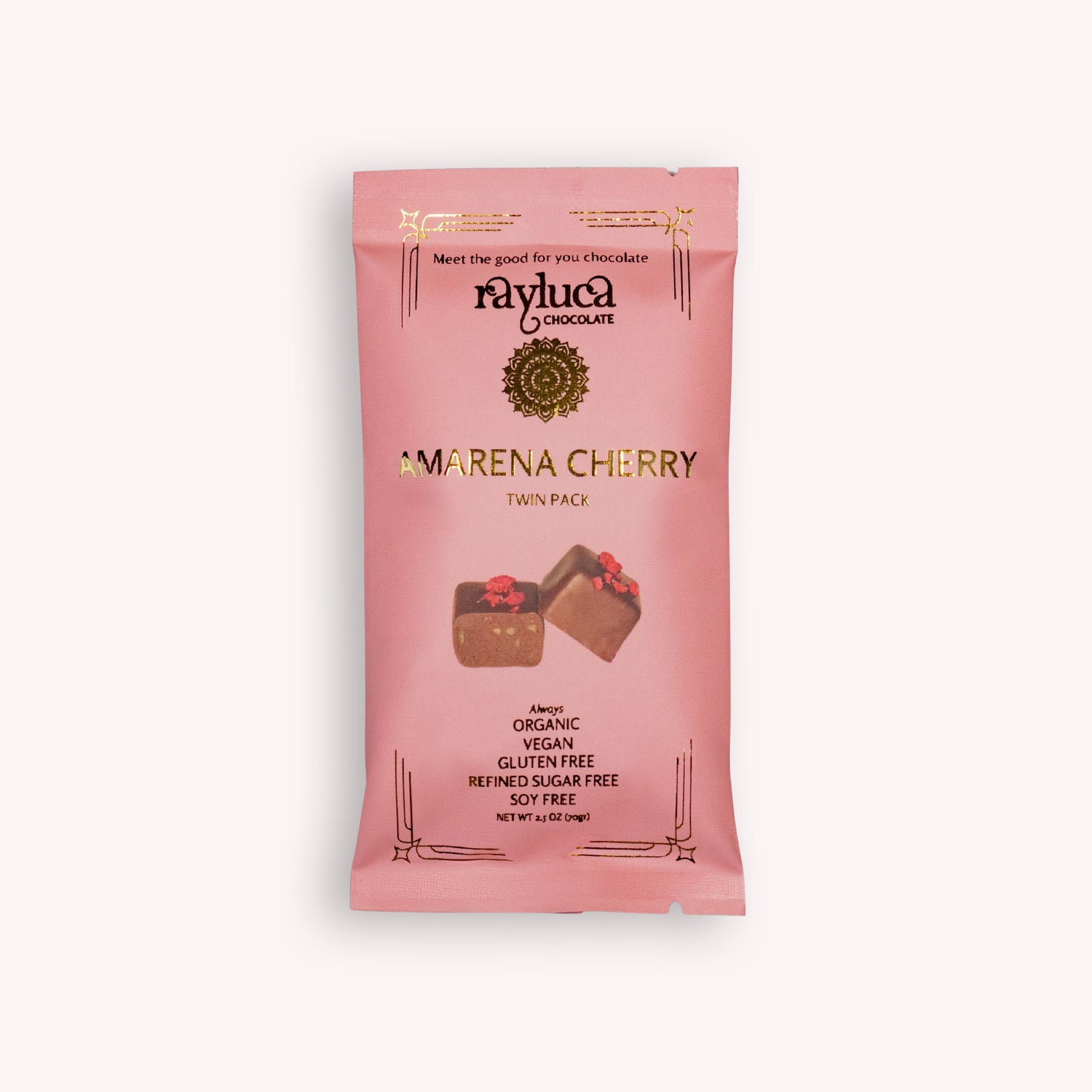 Organic 70% Dark Belgian chocolate ganache blended infused in pure Amarena Cherry Paste imported from Italy and notes of fine chopped pecans for a truly decadent experience. Garnished with dried raspberries, everything blends perfectly.